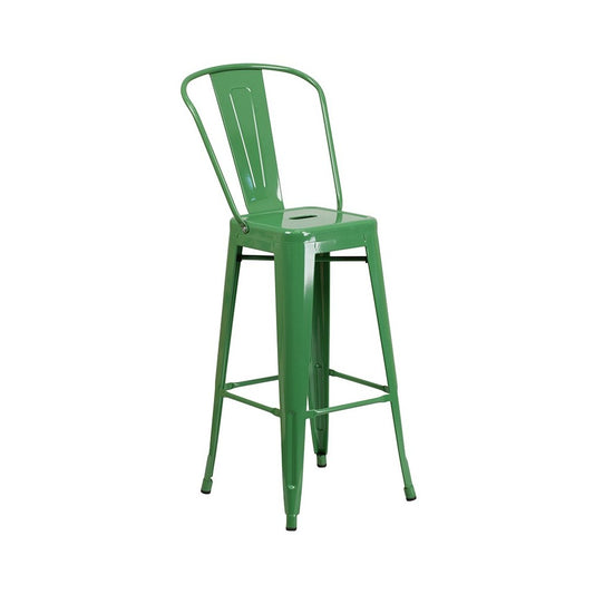 Commercial Grade 23.75" Square Green Metal Indoor-Outdoor Bar Height Table