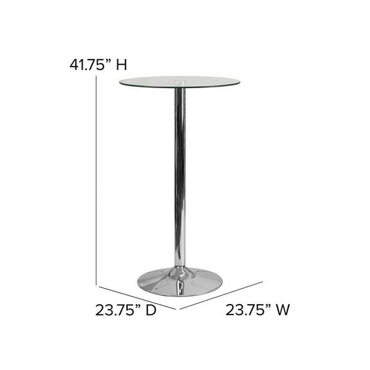 23.75'' Round Glass Table with 41.75''H Chrome Base