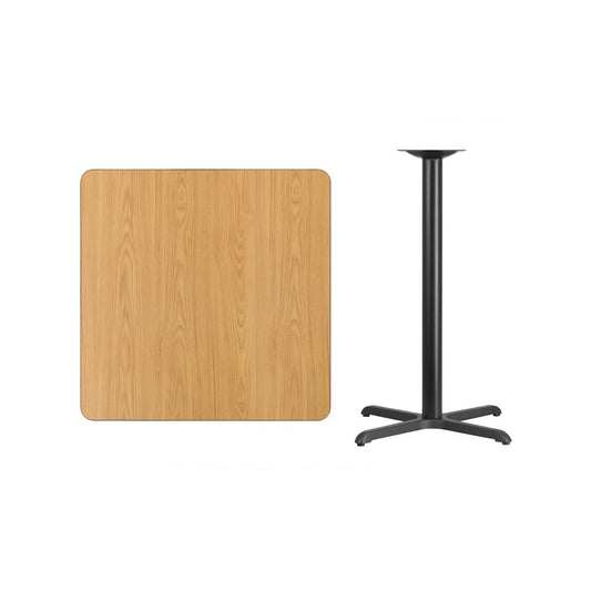 36'' Square Natural Laminate Table Top with 30'' x 30'' Bar Height Table Base