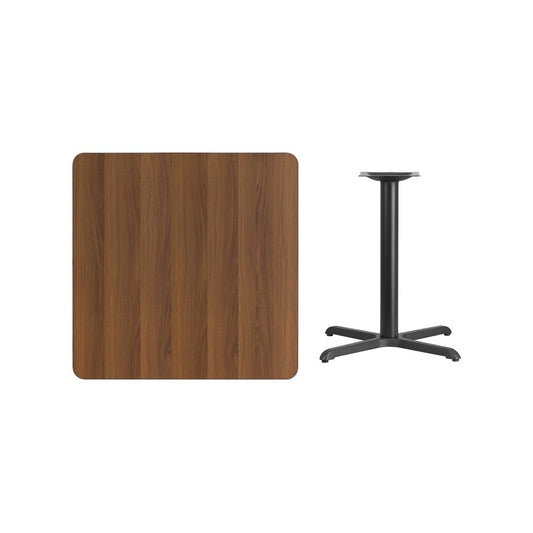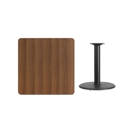 36'' Square Walnut Laminate Table Top with 30'' x 30'' Table Height Base