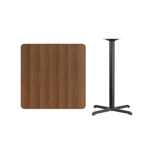 36'' Square Walnut Laminate Table Top with 30'' x 30'' Bar Height Table Base