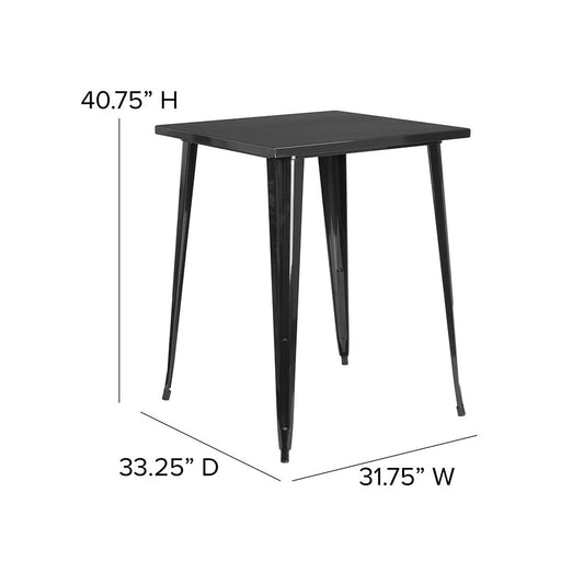 Commercial Grade 31.5" Square Black Metal Indoor-Outdoor Bar Height Table