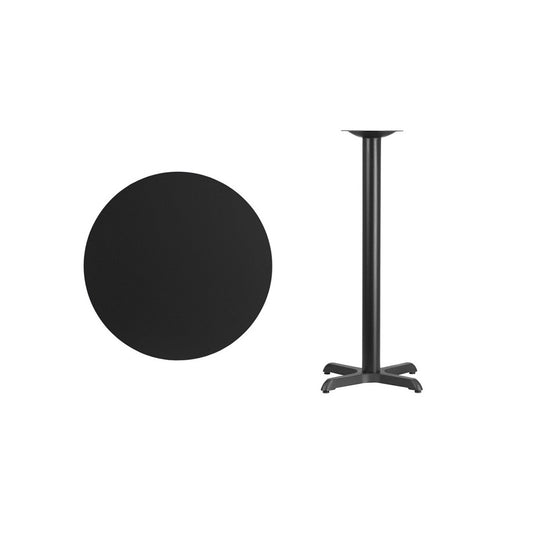 30'' Round Black Laminate Table Top with 22'' x 22'' Bar Height Table Base