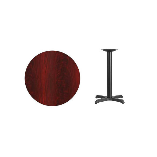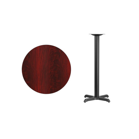 30'' Round Mahogany Laminate Table Top with 22'' x 22'' Bar Height Table Base