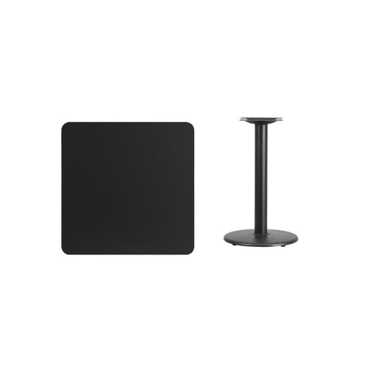30'' Square Black Laminate Table Top with 18'' Round Table Height Base