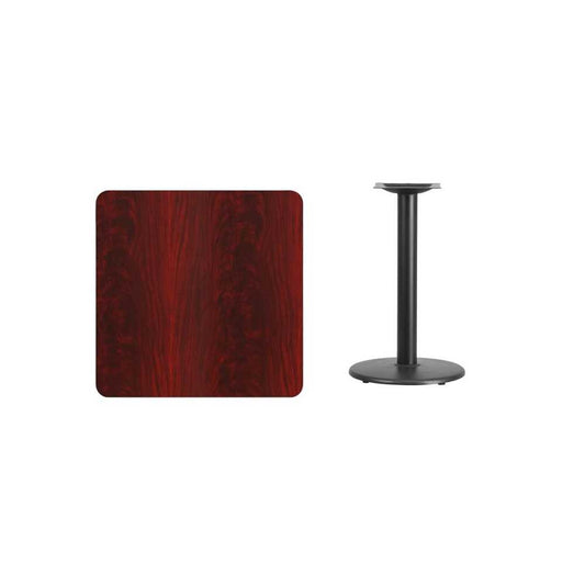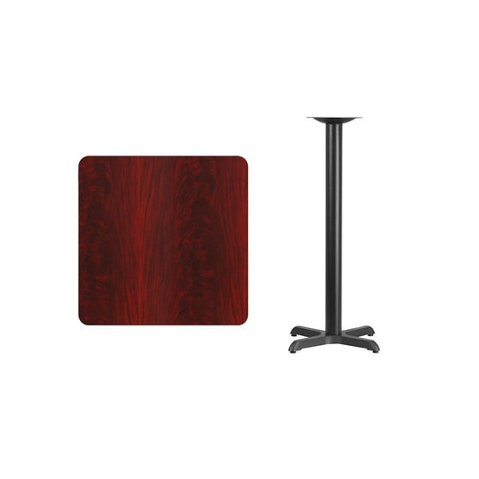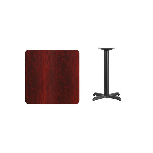 30'' Square Mahogany Laminate Table Top with 22'' x 22'' Bar Height Table Base