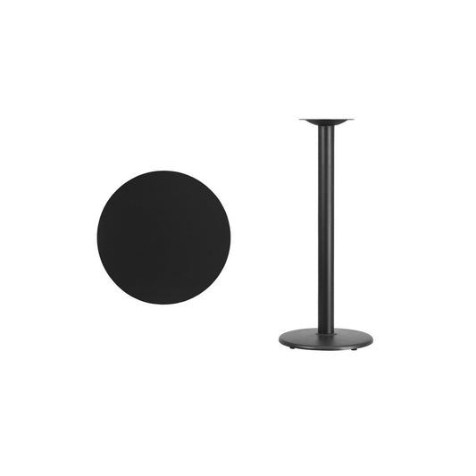 24'' Round Black Laminate Table Top with 18'' Round Bar Height Table Base