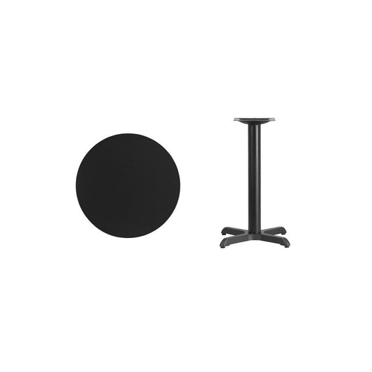 24'' Round Black Laminate Table Top with 22'' x 22'' Bar Height Table Base