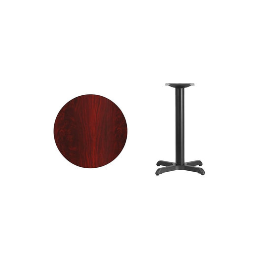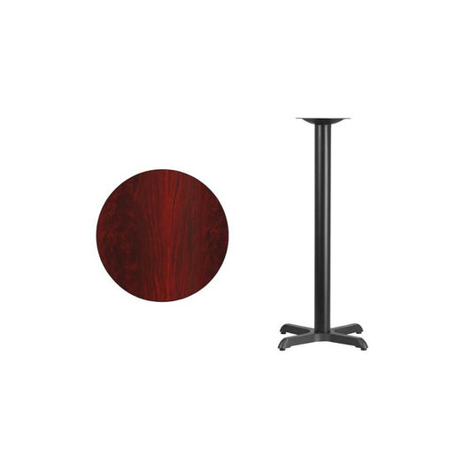 24'' Round Mahogany Laminate Table Top with 22'' x 22'' Bar Height Table Base