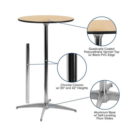24'' Round Wood Cocktail Table with 30'' and 42'' Columns
