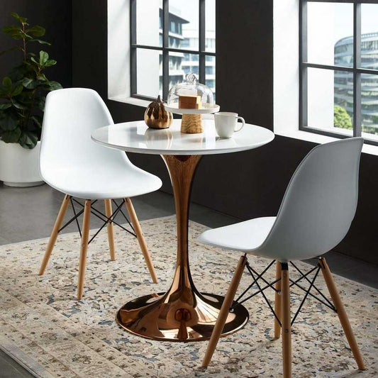 Lippa 28" Round Wood Top Dining Table, Rose White