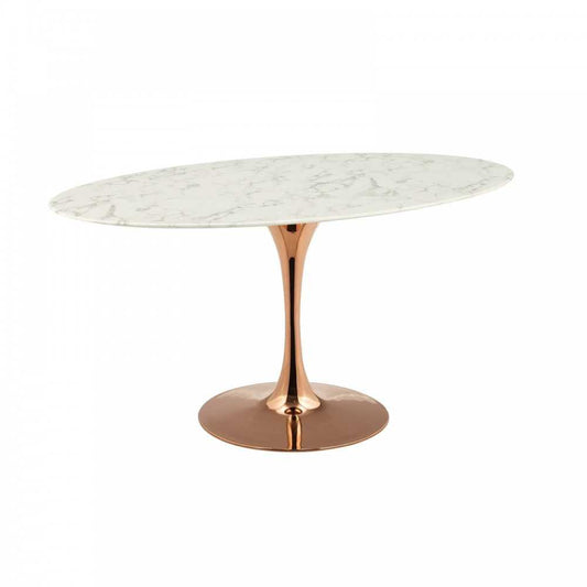 Lippa 60" Oval Artificial Marble Dining Table, Rose White