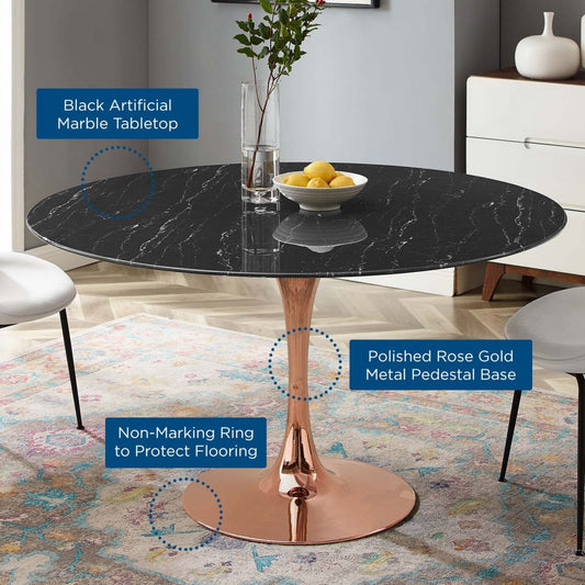 Lippa 60" Artificial Marble Dining Table, Rose Black