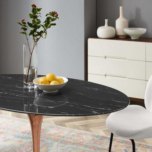 Lippa 60" Oval Artificial Marble Dining Table, Rose Black