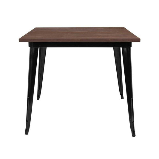 36" Square Black Metal Indoor Table with Walnut Rustic Wood Top