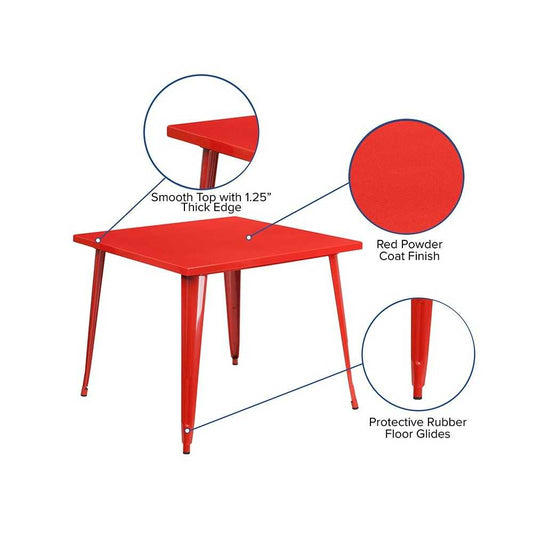 Commercial Grade 35.5" Square Red Metal Indoor-Outdoor Table