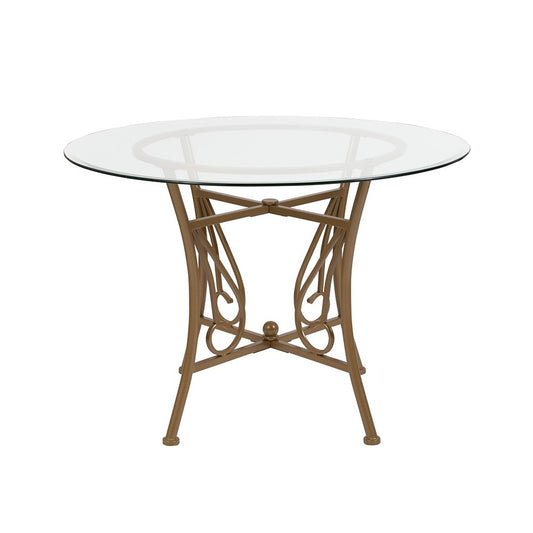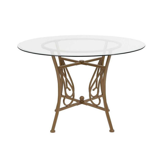 Princeton 48'' Round Glass Dining Table with Matte Gold Metal Frame