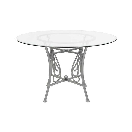 Princeton 48'' Round Glass Dining Table with Silver Metal Frame