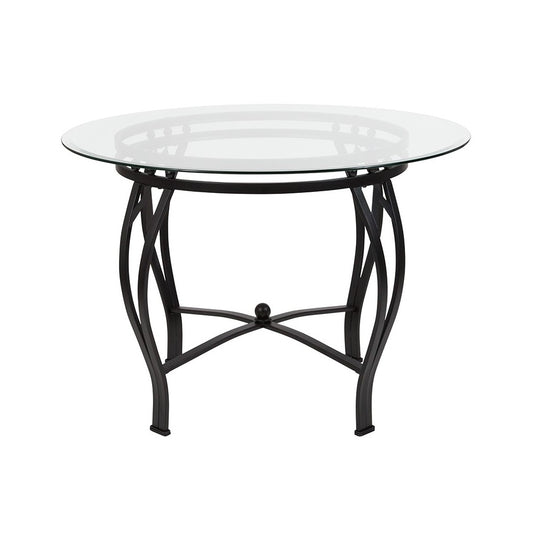 Syracuse 42'' Round Glass Dining Table with Black Metal Frame