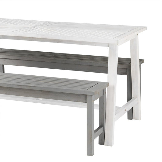 Vincent 3 Piece Outdoor Dining Table Set - White Wash/Gray