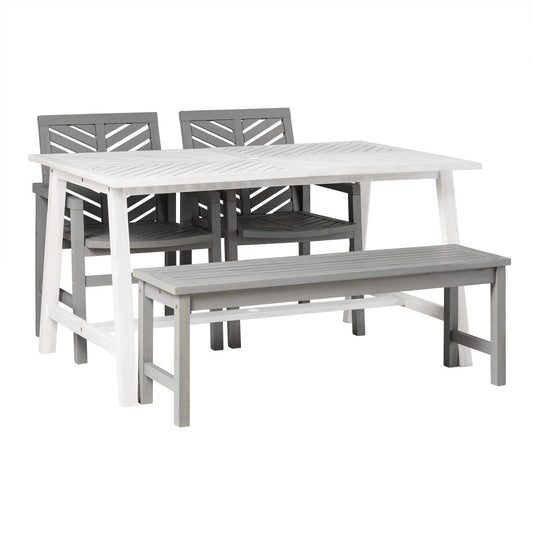 Vincent 4 Piece Outdoor Dining Table Set - White Wash/Gray