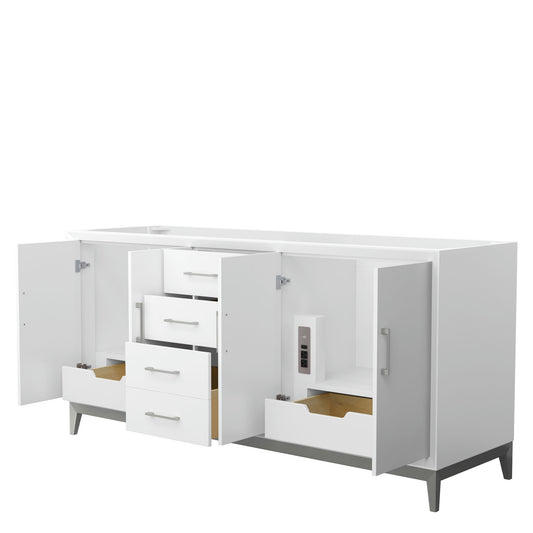 Amici 72 Inch Double Bathroom Vanity in White, No Sink, Brushed Nickel Trim