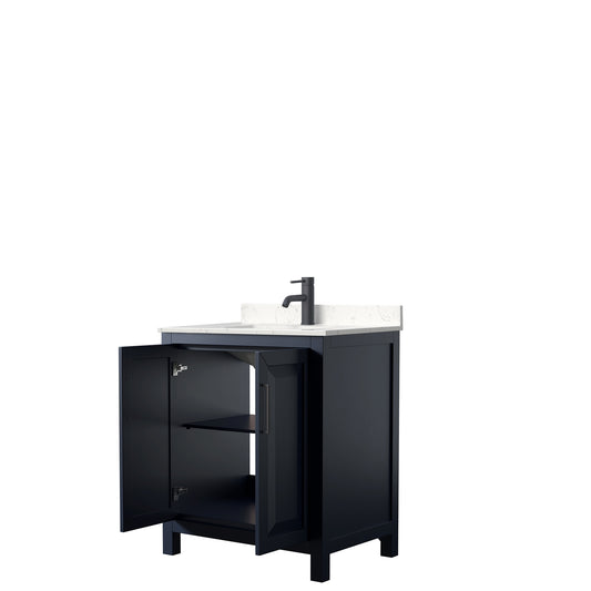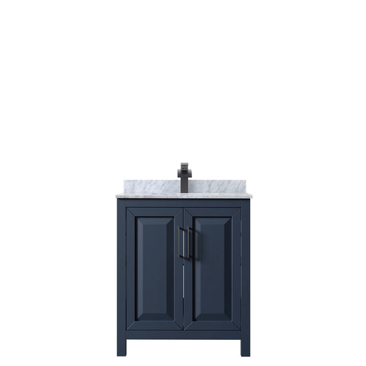 Daria 30" Single Vanity in Dark Blue, Carrara Cultured Marble Top, Black Trim