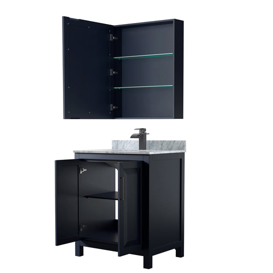 Daria 30" Single Vanity in Dark Blue, Top, Black Trim, Medicine Cabinet