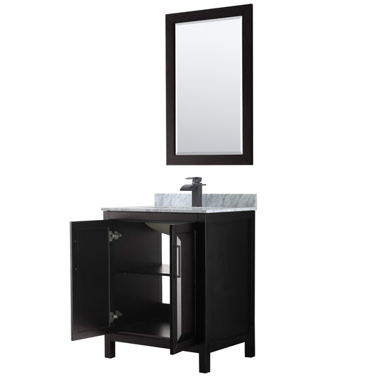 Daria 30" Espresso Single Vanity, Carrara Marble Top, Black Trim, 24" Mirror