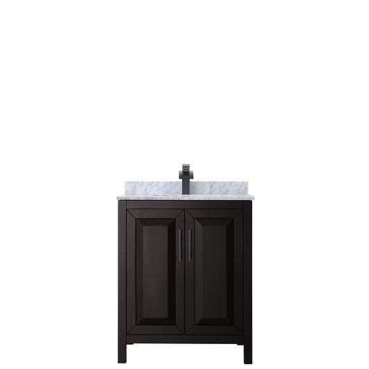 Daria 30" Single Vanity in Dark Espresso, Carrara Marble Top, Black Trim