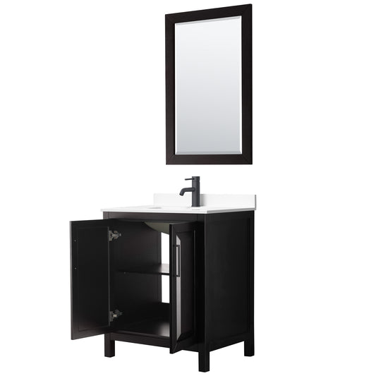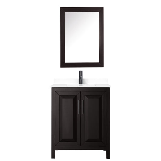 Daria 30" Dark Espresso Single Vanity, White Marble Top, Black Trim, 24" Mirror