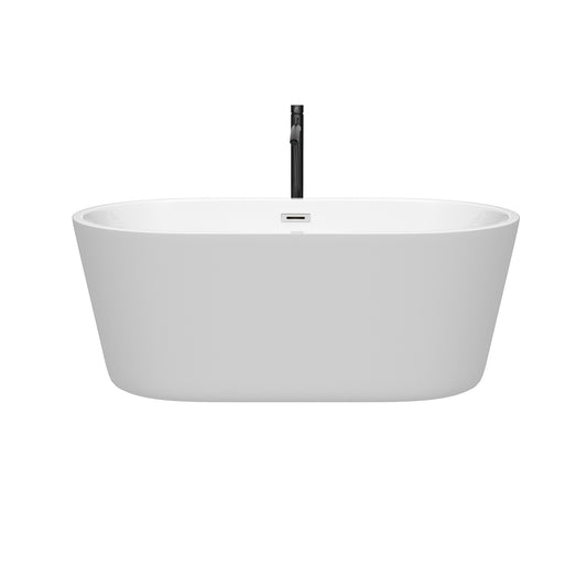 Carissa 60" Freestanding Bathtub in White, Overflow Trim in Matte Black