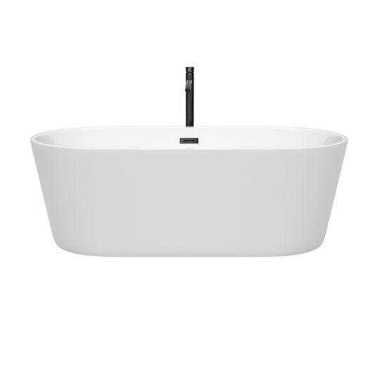 Carissa 60" Freestanding Bathtub in White, Shiny White Trim, Faucet in Black