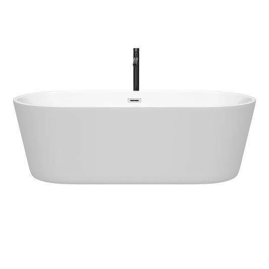 Carissa 67" Freestanding Bathtub in White, Overflow Trim in Matte Black