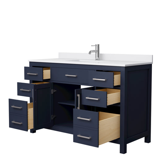 Beckett 54" Single Vanity in Dark Blue, White Cultured Marble Top, Nickel Trim
