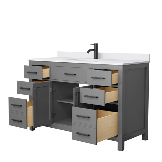 Beckett 54" Single Vanity in Dark Gray, White Cultured Marble Top, Black Trim