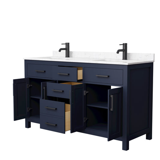 Beckett 60" Double Vanity in Dark Blue, Carrara Cultured Marble Top, Black Trim