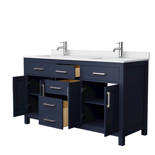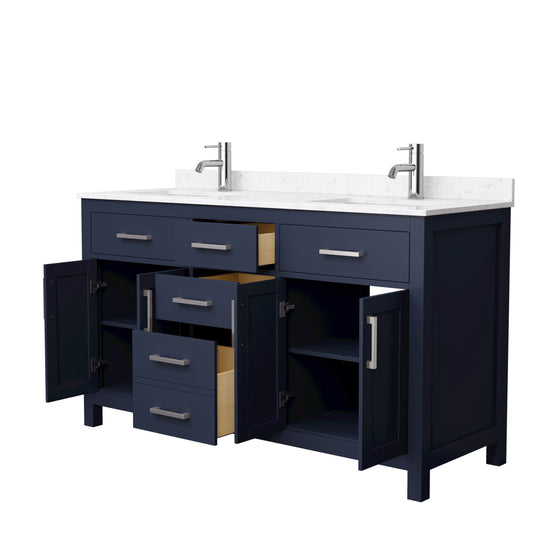Beckett 60" Double Vanity in Dark Blue, Carrara Cultured Marble Top, Nickel Trim