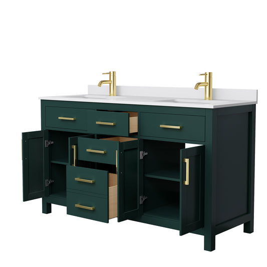 Beckett 60" Double Vanity in Green, Carrara Cultured Marble Top, Gold Trim