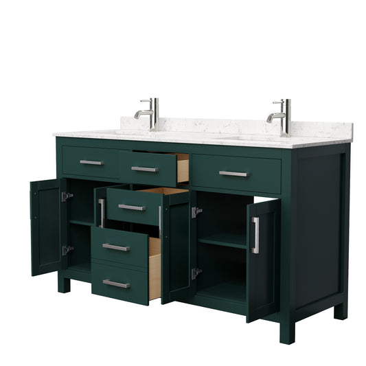 Beckett 60" Double Vanity in Green, Carrara Cultured Marble Top, Nickel Trim