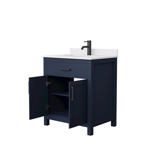 Beckett 30" Single Vanity in Dark Blue, Carrara Cultured Marble Top, Black Trim