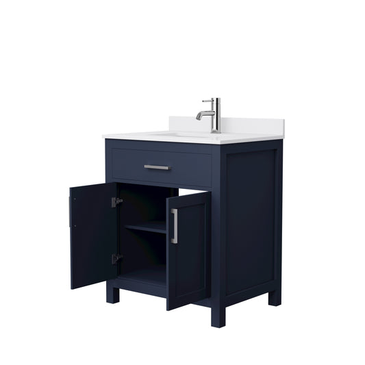 Beckett 30" Single Vanity in Dark Blue, White Cultured Marble Top, Nickel Trim