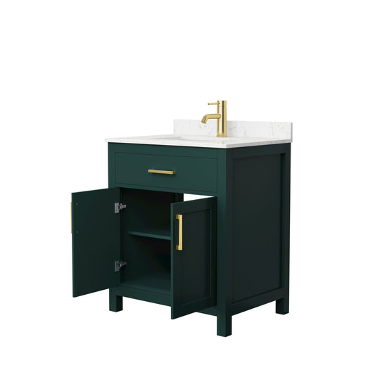 Beckett 30" Single Vanity in Green, Carrara Cultured Marble Top, Gold Trim