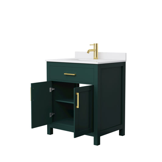 Beckett 30" Single Vanity in Green, White Cultured Marble Top, Gold Trim