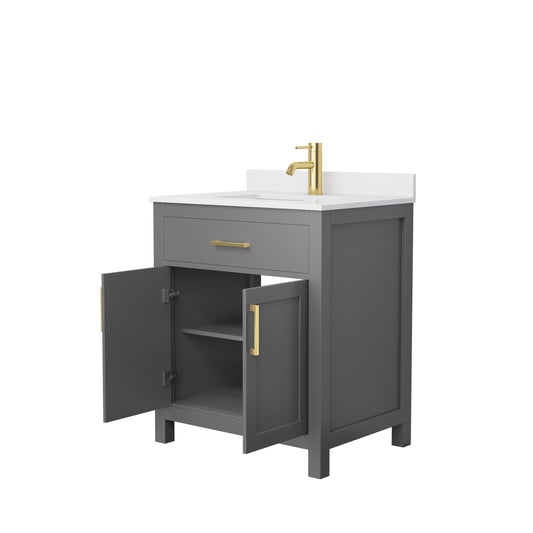 Beckett 30" Single Vanity in Dark Gray, White Cultured Marble Top, Gold Trim