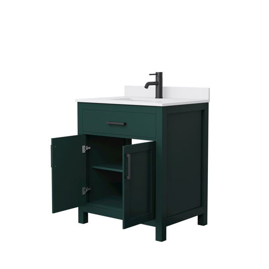 Beckett 30" Single Vanity in Green, Carrara Cultured Marble Top, Black Trim