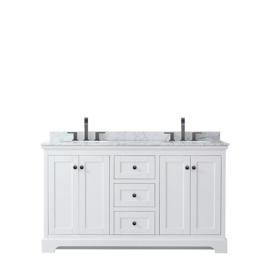 Avery 60" Double Vanity in White, Top, Oval Sinks, Matte Black Trim