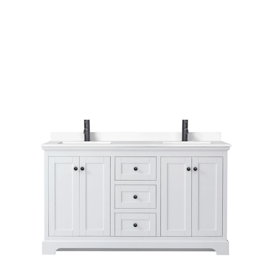 Avery 60" Double Vanity in White, White Cultured Marble Top, Black Trim