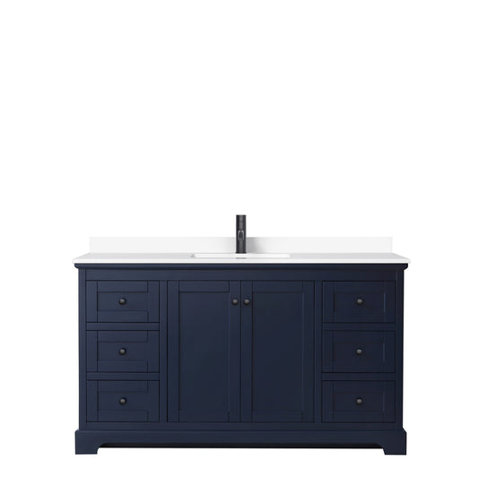 Avery 60" Single Vanity in Dark Blue, White Cultured Marble Top, Black Trim