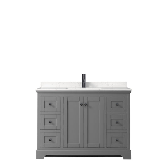 Avery 48" Single Vanity in Dark Gray, Carrara Cultured Marble Top, Black Trim